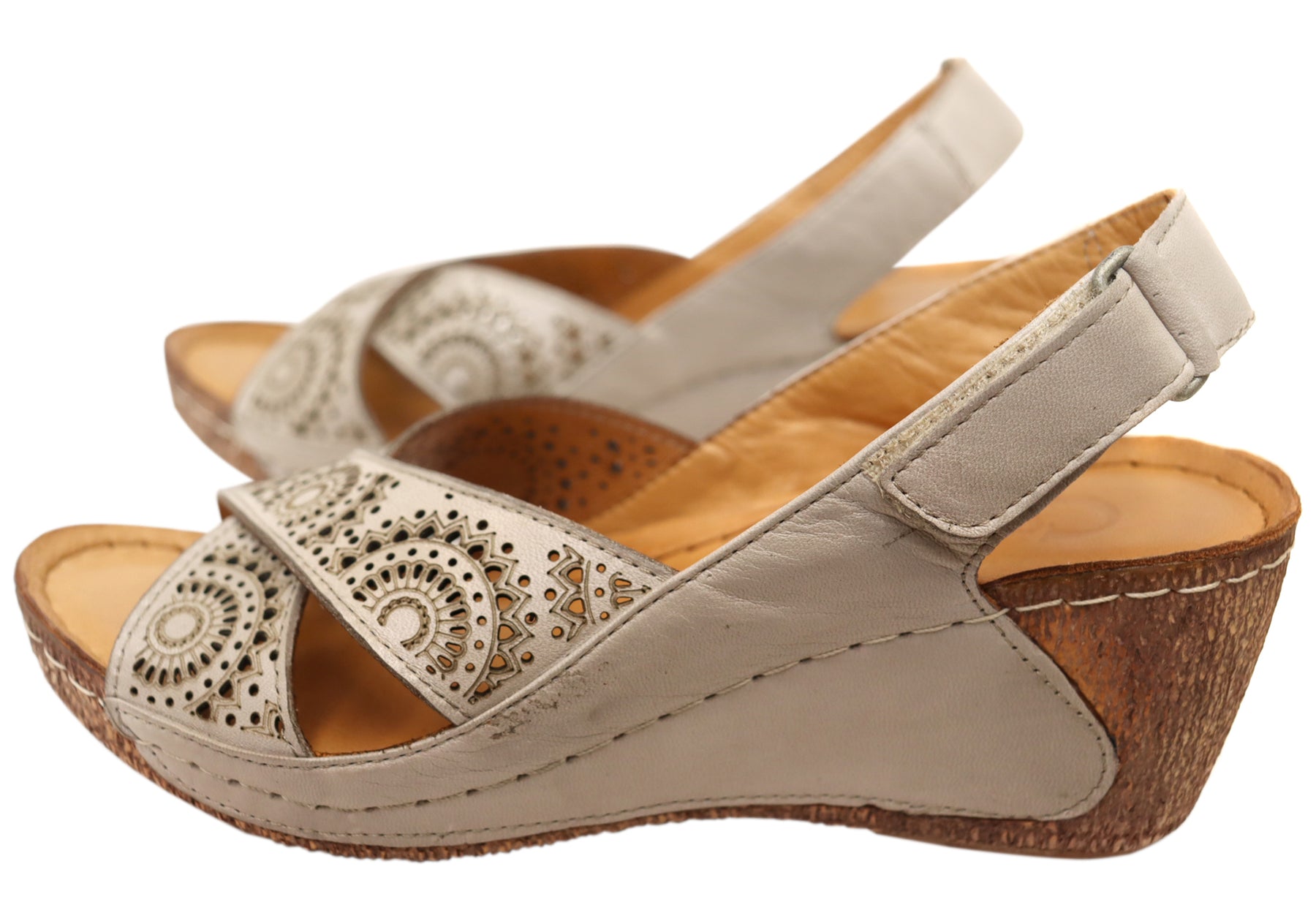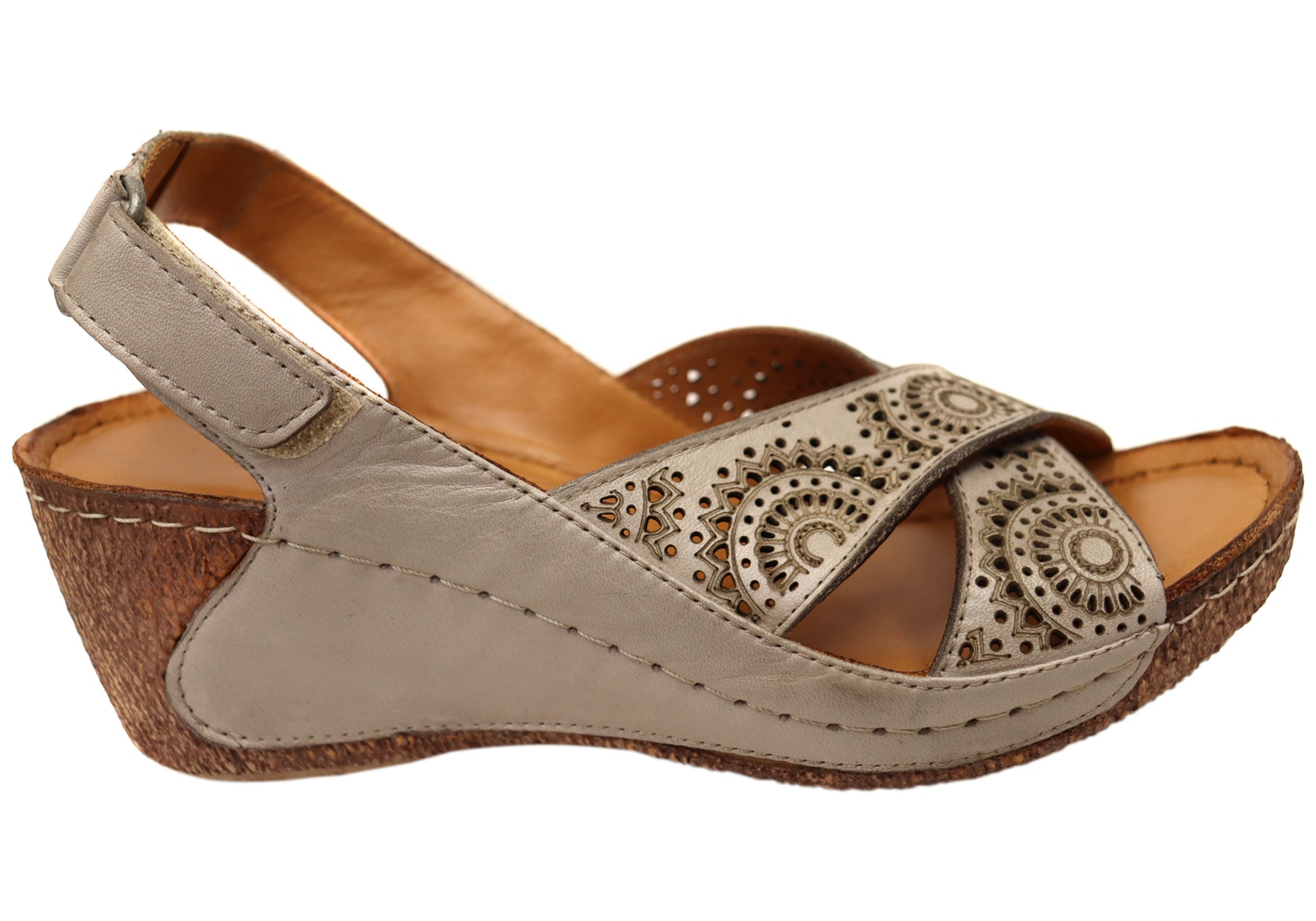 Cabello Comfort Hadasa Womens Comfortable Leather Wedge Sandals