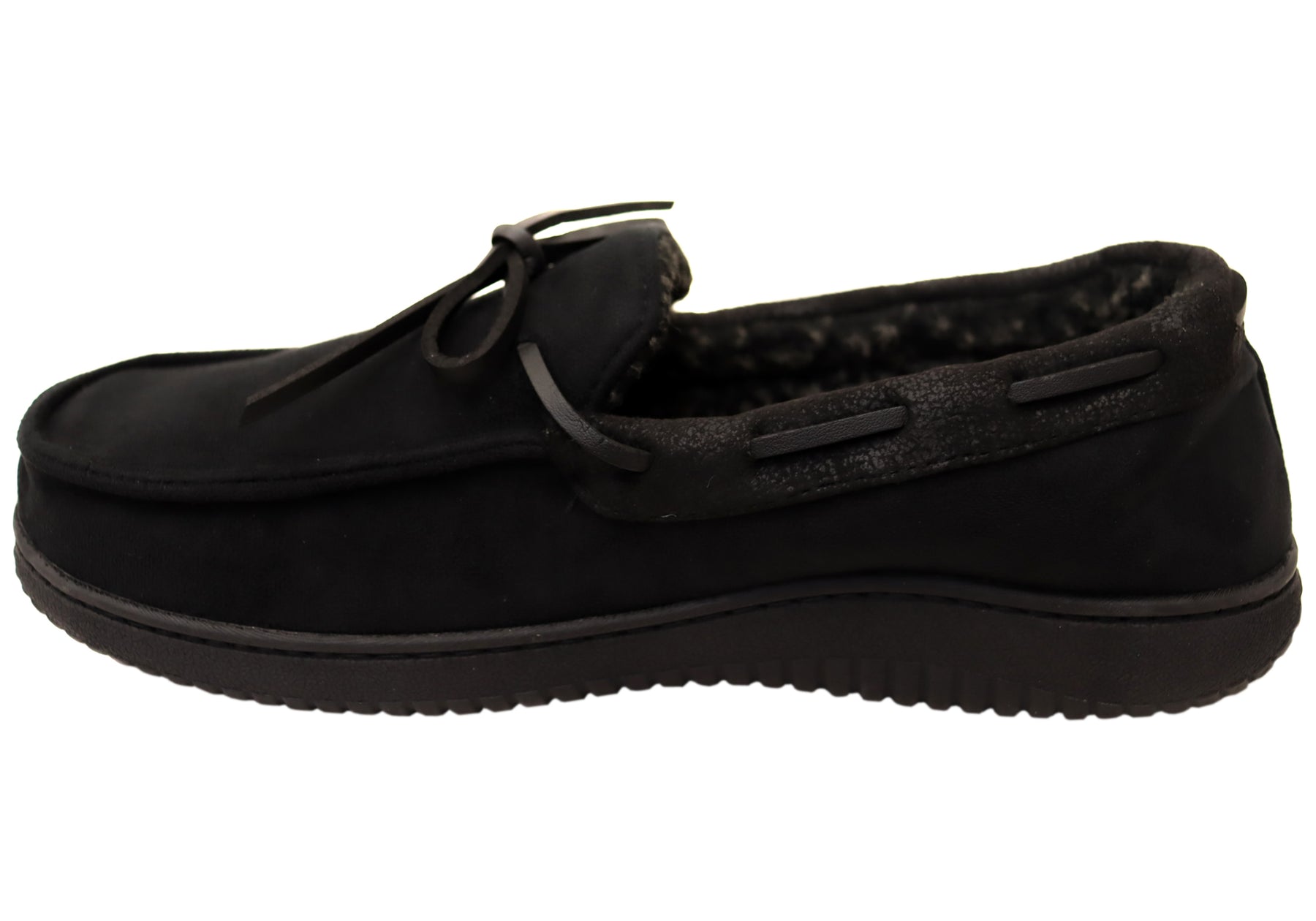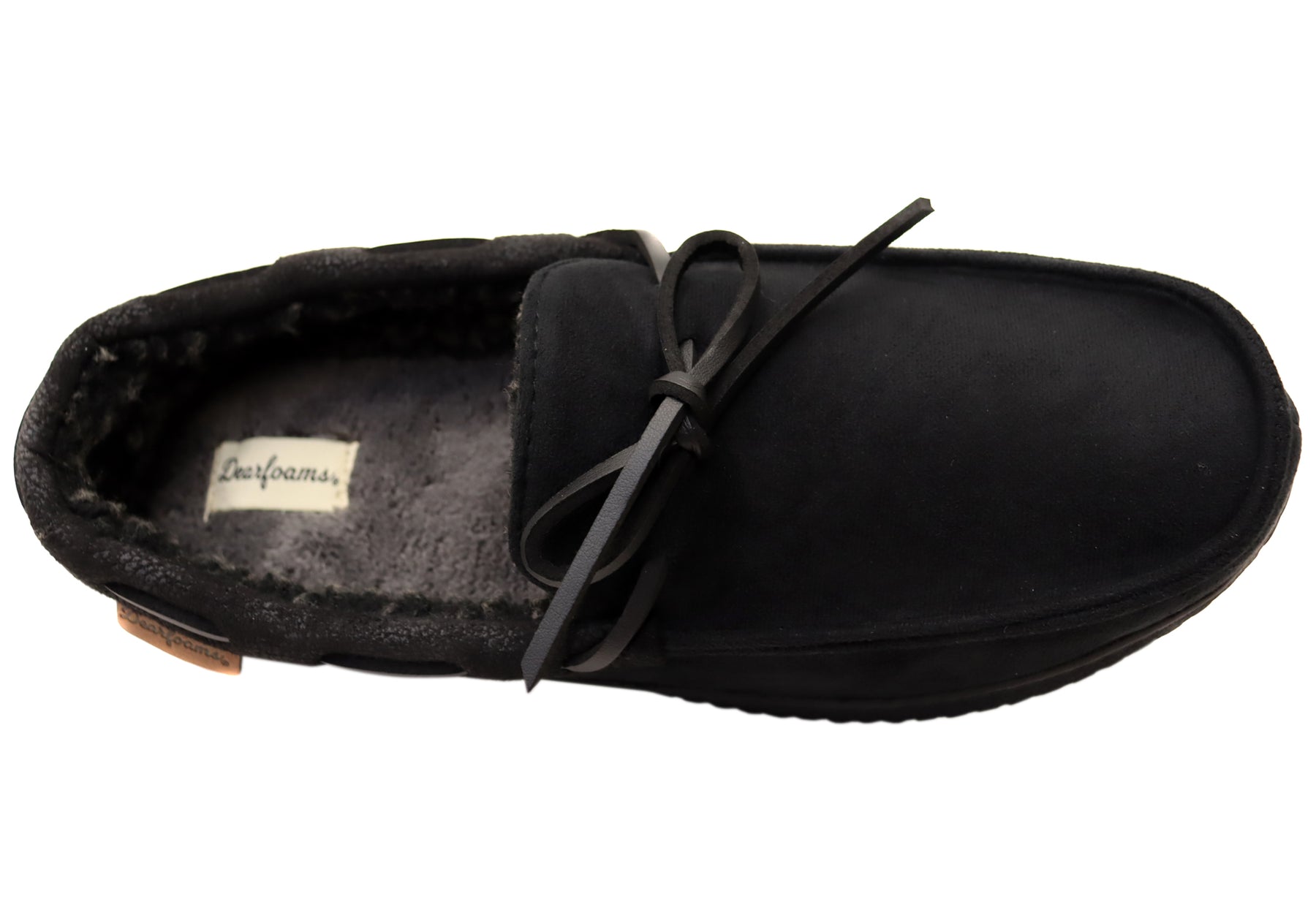 Dearfoams Mens Pierce Microsuede Moccasin With Tie Comfort Slippers