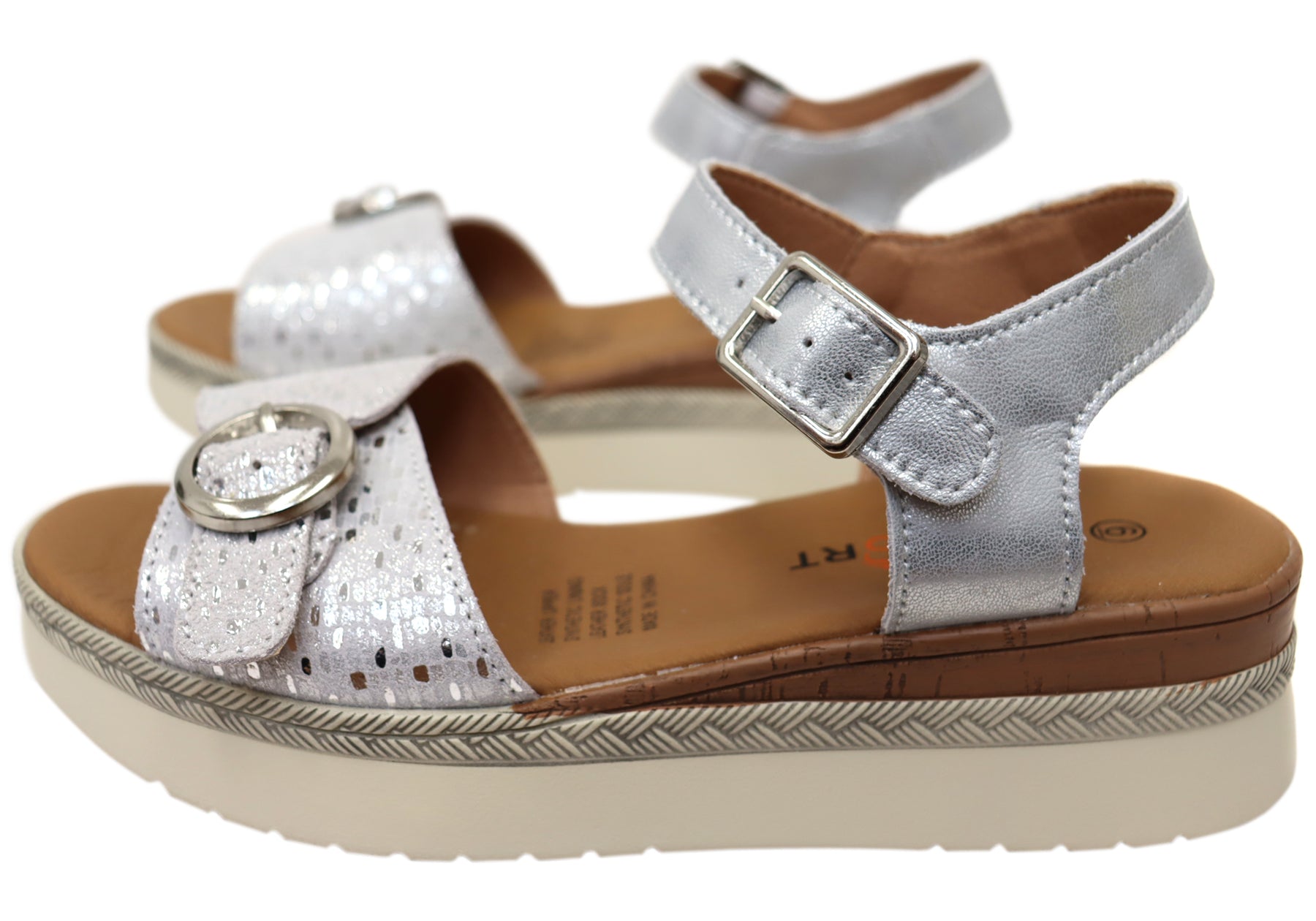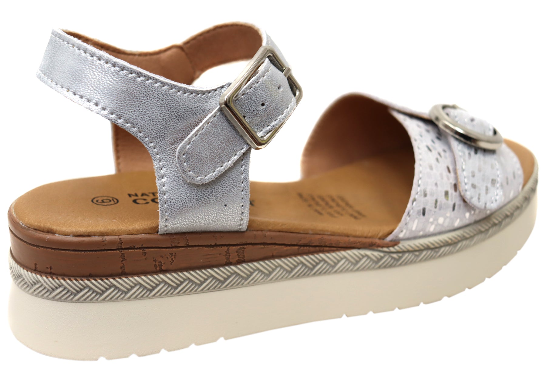 Natural Comfort French Womens Comfortable Leather Sandals Silver